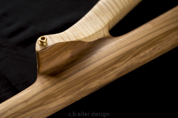 Korpus aus Riegelahorn und Olivenholz, mehrteilig, verleimt